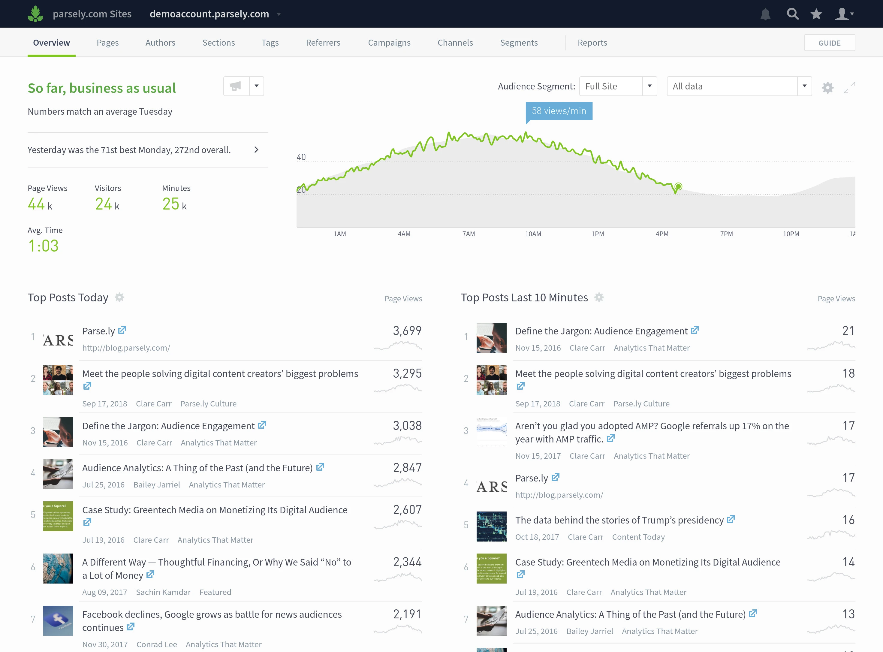 For ten years or so my day job was working on the Parse.ly Analytics Dashboard so I'd be amiss not to talk about it for a moment. With a pretty small development team, we managed to create world-class analytics product that is now used by people in big publishing names like Conde Nast and Bloomberg. Every now and then a user would drop a line to the success team on how much they love dash and how simple the interface is, and that gave me all the warm and fuzzies.
