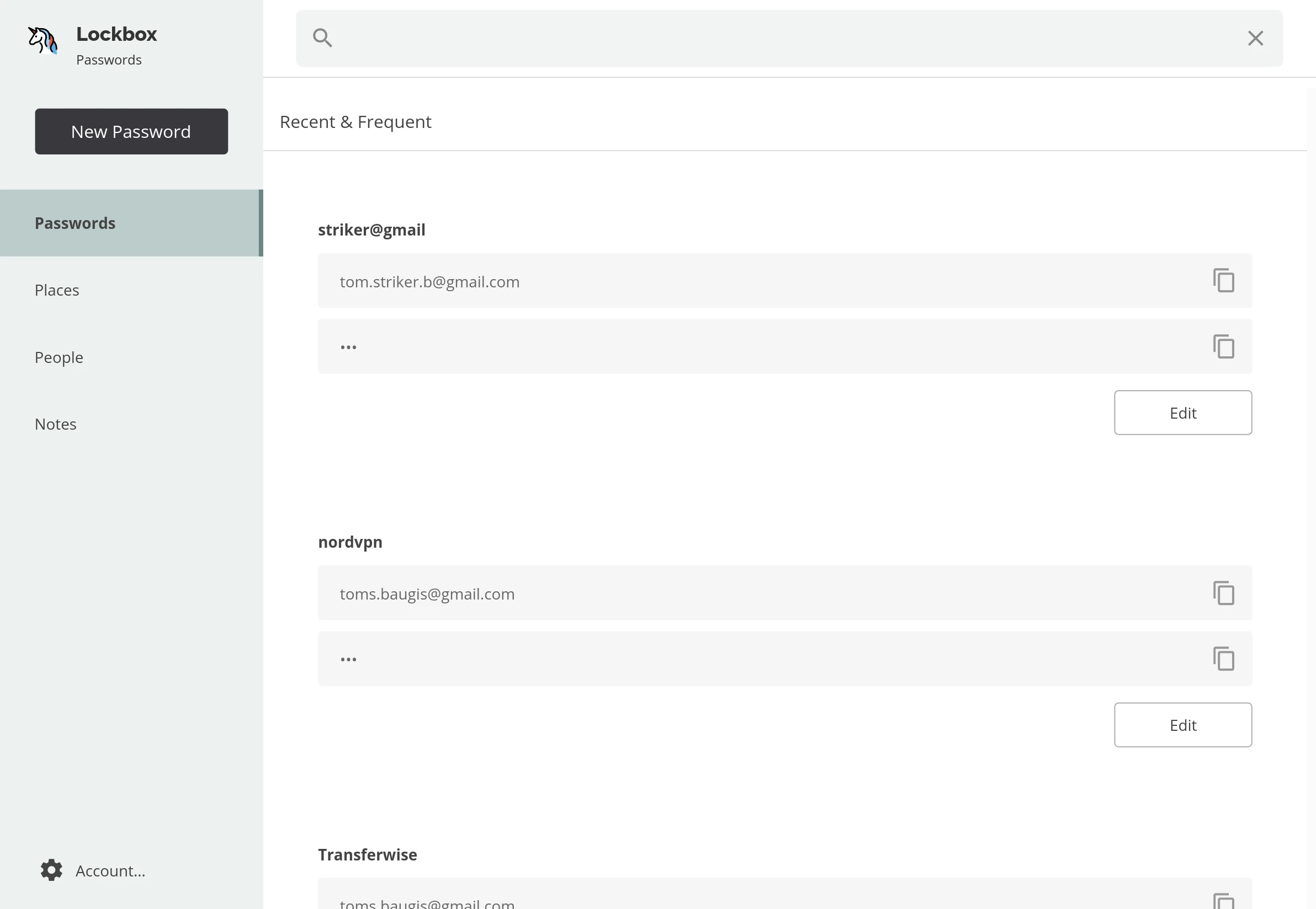 Lockbox is a personal password manager and a place to store all kinds of private info. It's super-secure as the information is encrypted right here in your browser, and nobody but you will be able to access it. For your convenience, the encrypted information bundle is synchronized with the servers, so that it is accessible from all your devices. Lockbox is completely free and intends to stay that way.